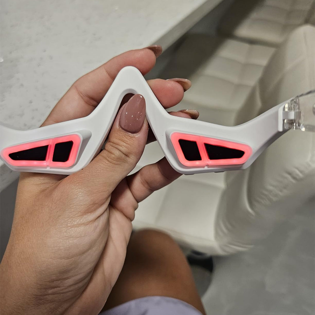 Red light therapy glasses use low-level red or near-infrared light to stimulate cellular activity around the eyes. This can help reduce eye strain, improve circulation, and promote relaxation.